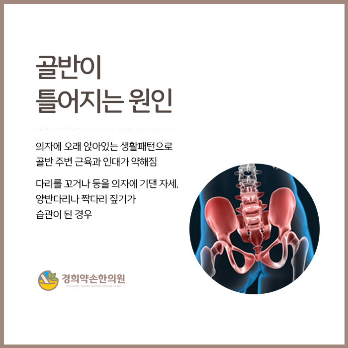 골반은 우리 몸의 중심에 위치하여 상체와 하체를 연결해주는 역할을 합니다. 그래서 위로는 척추가, 아래로는 고관절과 양쪽 다리가 밀접하게 이어져 있어요. 이런 신체적인 구조로 골반이 좌우 균형을 잃게 되면 골반만 문제가 생기는 것이 아니라, 상체와 하체 전신의 문제로 이어집니다. 골반통증은 물론이고 허리와 목통증, 고관절통증, 다리가 O,X자로 휘거나 다리통증으로 보행이 불편해지는 것이죠. 따라서 골반틀어짐이 의심될 만한 증상이 느껴진다면 전신 문제로 발전하기 전, 되도록 초기일 때 영암 삼호 골반교정한의원에 내원하셔서 진료를 받고 교정치료로 바른 위치를 회복해 주는 것이 좋겠습니다.