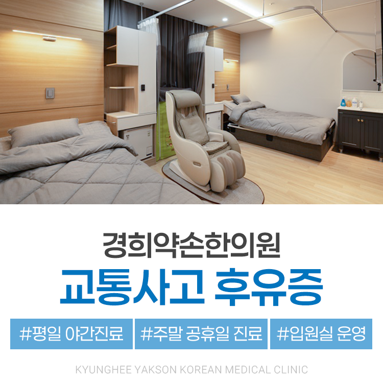 교통사고 후유증은 잠복기를 둔 채 찾아오곤 합니다. 잠복기는 짧으면 며칠로 그치기도 하지만 몇 개월이라는 긴 시간 동안 이어질 수 있습니다. 그렇다보니 뒤늦게 발생한 이상 증후들이 교통사고와 접점을 가지고 있을 거라고는 생각하지 못하고 있다가 상황이 더 악화되기도 합니다. 이러한 불상사가 벌어지지 않도록 하려면 이상을 느끼지 못하고 있을지라도 목포입원실한의원으로 내원을 하셔서 검진을 받아 보실 것을 권유드리고 싶습니다.