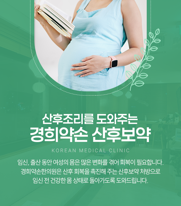안녕하세요. 경희약손한의원입니다. 산모분들께서는 임신을 하고 있을 때부터 조급하게 아이를 키우는 것에만 신경을 쓰고는 합니다. 그러는 사이 출산 후 자신의 몸을 돌봐야 한다는 것도 잊어버린 채 넘어가게 될 수 있습니다. 이러한 상황은 산모를 각종 산후풍에 노출시키는 원인이 됩니다. 출산 후에는 기혈 및 면역력이 약화되어 있는 데다가 자궁으로는 어혈까지 쌓여, 여러 증상이 발생하기 쉽고 다양한 질환이 발병할 가능성도 높습니다. 따라서 출산 직후에는 산모분 자신의 몸 건강을 신경 쓰는 것이 중요하다고 말씀을 드립니다. 본원에서는 목포산후보약을 통하여 약해진 몸을 보하며 건강하게 일상생활로 되돌아가실 수 있도록 도움을 드리고 있습니다.