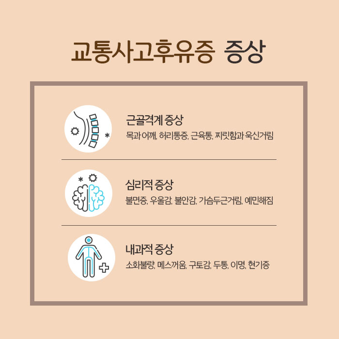 교통사고후유증은 다양한 유형이 복합적으로 나타납니다