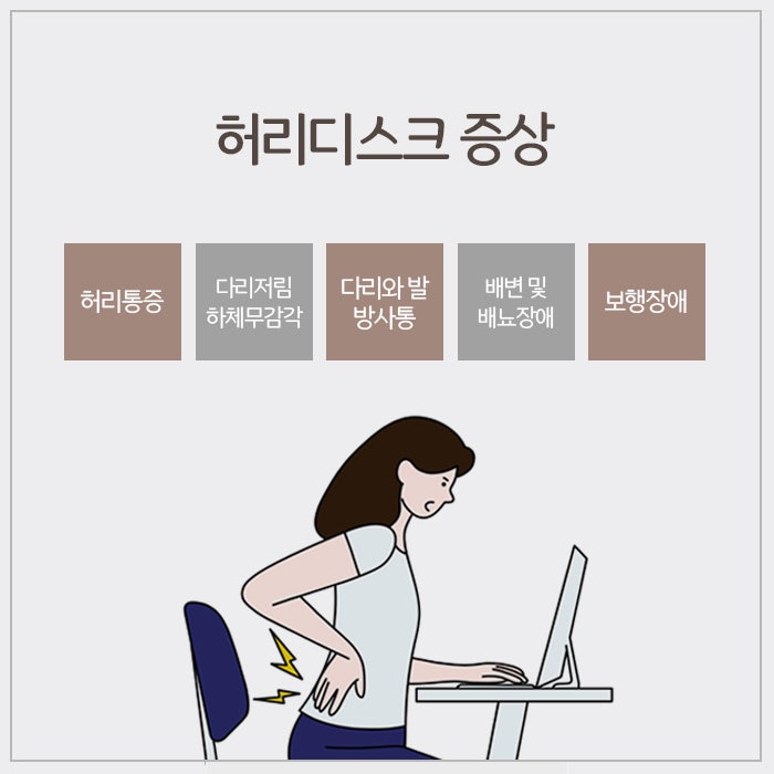 시간이 지나면 척추 주변 신경이 눌리고 자극을 받아서 허리통증은 물론이고 하체가 저리거나 힘이 빠지는 등 증상이 더해질 수 있습니다. 즉, 단순히 허리통증으로 시작되었던 것이, 나중에는 척추 뼈 사이사이에 있는 디스크까지 손상되어서 수핵이 탈출하는 허리디스크로 이어지는 것입니다. 만약 허리디스크가 있는데 대처하지 않고 방치한다면 나중엔 다리가 저리고 묵직해지는 증상은 물론, 보행장애나 배변장애 같은 심각한 상황으로 이어질 수 있으니 초기에 치료를 받는 것이 매우 중요하겠습니다. 만약 허리디스크나 척추질환이 악화된다면 나중엔 치료를 받더라도 회복이 더딜 수 있으며, 수술적인 치료가 불가피한 상황이 될 수도 있다고 말씀드립니다.
