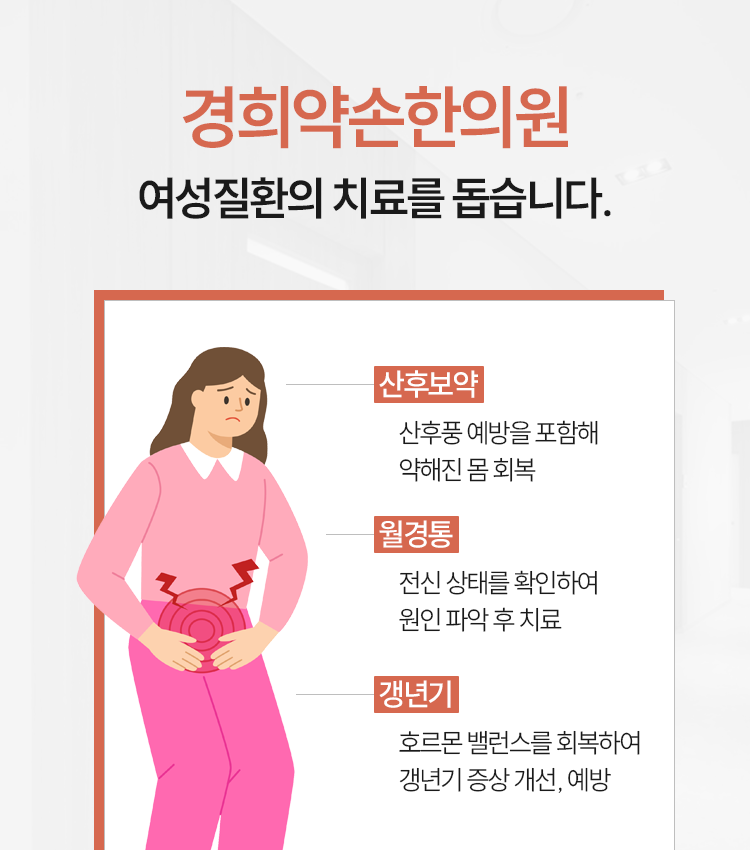 안녕하세요. 목포 경희약손한의원이 인사드립니다. 주기에 따라 차이는 있지만 보통 한 달 정도의 간격을 두고 여성분들은 월경을 경험하는 게 일반적인데요. 월경을 할 때가 되면 아랫배가 묵직하게 느껴진다거나 직접적으로 통증을 느끼는 분들도 계십니다. 심지어 월경을 할 때가 되면 쥐어짜이는 듯한 강한 통증에 아무것도 하지 못하고 끙끙 앓기만 하는 일도 벌어질 수 있습니다.