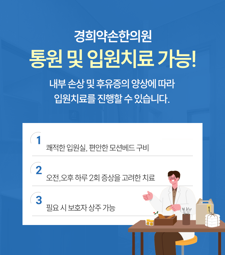 또한 팔다리가 저리거나 감각이 둔해지는 증상이 나타나기도 하며 원인을 알 수 없는 두통이나 소화 불량과 같은 전신적인 불편함이 동반되기도 하는데요. 이러한 증상들은 육안으로 확인되는 외상이 없더라도 신체 내부의 기혈 순환이 정체되면서 나타난다고 목포 경희약손한의원은 말했습니다.