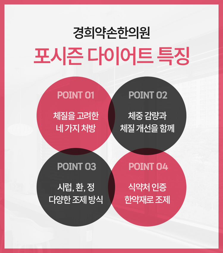 겨울 체질인 분들은 전반적인 혈액순환이 정체되어 몸이 차갑고 잘 붓는 양상을 띠는 사례가 많다는 안내를 드렸습니다. 만성적인 변비로 인해 독소가 원활하게 배출되지 못하고 체내에 축적되면서 대사 기능이 저하되기 쉬운 환경을 가지고 있는데요. 따라서 겨울 체질은 꽉 막힌 순환 체계를 원활하게 소통시키는 등의 과정을 목포다이어트 한약으로 기대해 보실 수 있겠습니다.