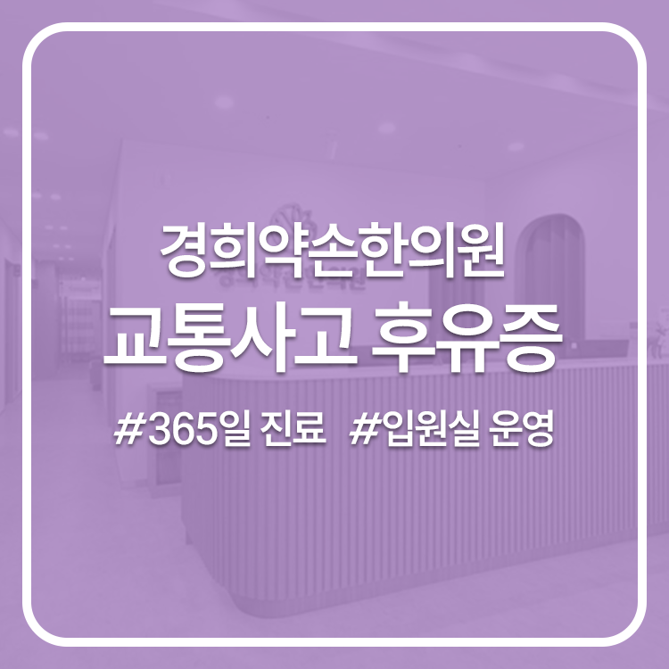 사고 직후에는 뚜렷하게 나타나지 않다가 일정한 시간이 흐른 뒤에 서서히 고개를 드는 각종 증상을 통틀어 교통사고 후유증이라 일컫습니다.
