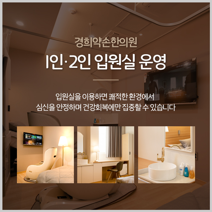 평소 환자분의 건강상태나 체질, 차량에 탑승한 자리나 사고의 유형 등에 따라서 같은 교통사고를 겪었어도 다 다른 후유증을 호소하게 될 수 있기 때문입니다. 그래서 남악교통사고한의원은 면밀한 진료 하에 환자 개개인에게 맞는 한방치료를 계획해 드리고 있으니 믿고 찾아주시기 바랍니다. 저희 한의원은 후유증 개선을 위해서 침과 약침, 봉침, 한약, 추나요법, 뜸, 부항 등 다양한 한방치료를 준비해 놓고 있으며 증상과 체질에 따라서 적절하게 병행하여 건강회복 속도를 높일 수 있습니다. 한편 사고 후 통증으로 통원이 어렵거나 좀 더 집중적인 치료가 필요한 환자도 발생하는데요. 남악교통사고한의원은 이런 경우에 대비하여 1~2인실로 이뤄진 입원실을 운영하고 있답니다. 쾌적하게 관리된 입원실에서 심신의 안정을 취하며 회복에만 집중하고 싶다면 언제든 문의해 주시기 바랍니다.
