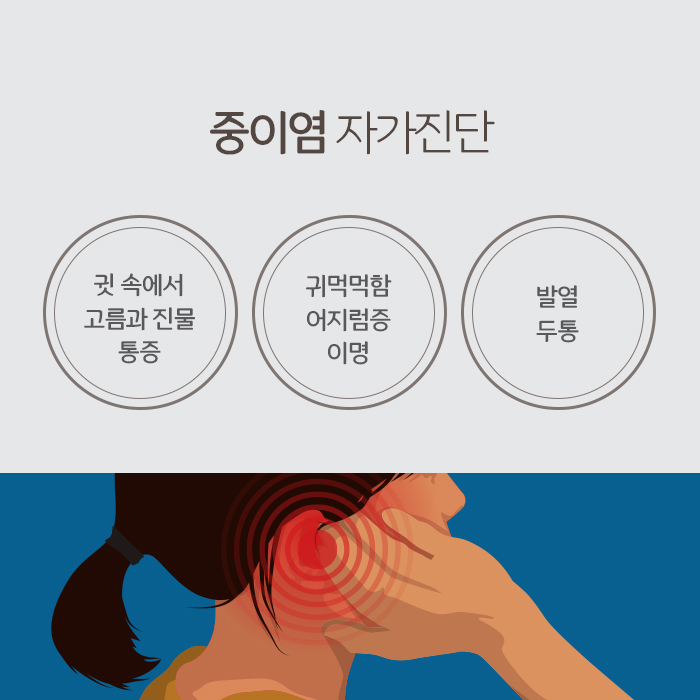 귀는 외이와 중이, 내이로 구분이 되는데 고막에서 달팽이관까지 이르는 중이에 염증이 생기는 것을 중이염이라고 합니다. 중이염은 면역력이 저하되었거나 바이러스 감염 혹은 이관 기능이 저하되어서 발생하게 됩니다. 특히 아이들의 경우에는 이관의 길이가 성인보다 짧고 직선으로 되어 있기 때문에 감기나 비염에 걸렸을 때 세균이 콧물과 함께 귀로 넘어가기가 쉬운데요. 이 때문에 중이염은 성인에 비해 소아에게서 더 많이 나타나는 경향이 있습니다. 중이염은 귓속 고막에 염증이 발생하는 것이라서 귀통증이 생기는 것은 물론 두통과 발열, 심할 경우 난청이 오기도 해요.