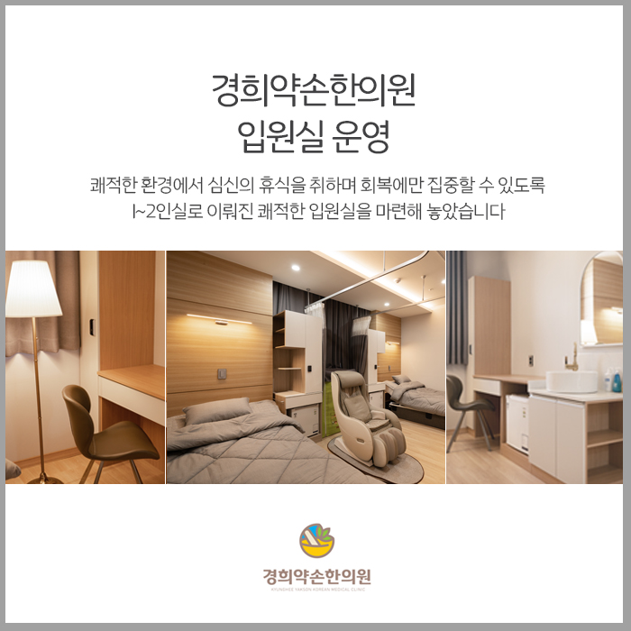 한약은 몸 속에 있는 어혈과 노폐물을 신속하게 배출해주고 기혈순환을 원활하게 하여 염증과 부기제거, 통증개선에 도움이 됩니다. 또한 내부조직의 재생을 돕고 면역력을 높여 심신을 안정시키는 효과도 있습니다. 남악한의원은 평일에 바쁜 일정으로 내원하기가 어려운 분들을 위해서 평일 저녁 8시까지 야간진료를 하고 있으며 토요일과 일요일, 공휴일에도 쉬지 않고 진료를 운영하고 있으니 내원 스케줄에 참고해 주시기 바랍니다. 또한 몸 상태등 환경에 따라 통원치료가 어려운 경우를 대비하여 입원치료도 가능하오니 입원실 문의도 편하게 해 주세요.