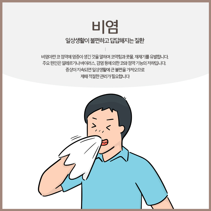 비염 방치시 호흡장애나 수면무호흡증, 심한코골이, 축농증, 천식 등 다양한 질환으로 악화