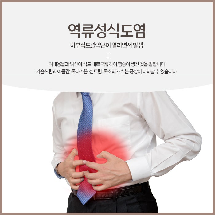 이렇게 식사 후 바로 자리에 눕는 습관은 아직 소화가 되지 않은 상태에서 눕는 것이라서 위에 상당한 부담을 줄 수 있으며, 누운자세는 위에서 음식물을 소화하는 과정시 위산을 식도로 역류하게 만듭니다. 그러므로 식사 후에는 최소 1~3시간 가량 눕지 않는 것이 좋고, 가볍게 산책을 하여 소화를 돕는 것도 좋겠습니다. 한편 카페인의 지나친 섭취 또한 위산의 분비를 촉진해서 위 점막을 자극하고 하부식도괄약근을 느슨하게 하여 위 내용물 역류현상을 일으키니 조심해야 합니다. 목포역류성식도염으로 인한 증상은 매우 다양해요. 가장 대표적인 것은 위액이 역류하면서 식도를 자극하여 속이 쓰리고 통증이 오는 것입니다.