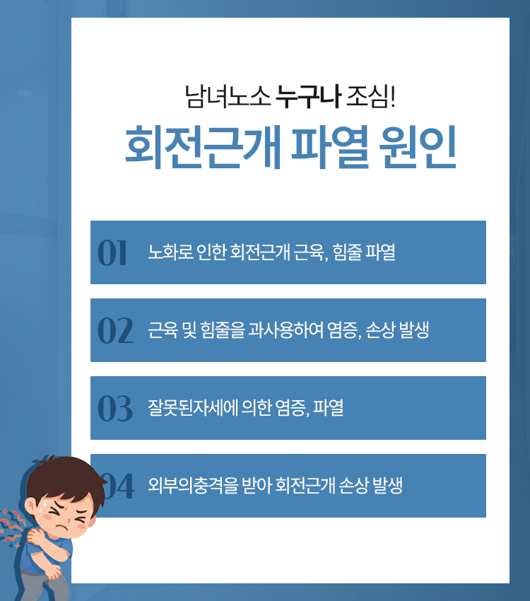 회전근개의 파열이 발생하는 원인에 대해서도 보다 구체적인 안내를 다시금 전해드리도록 하겠습니다.